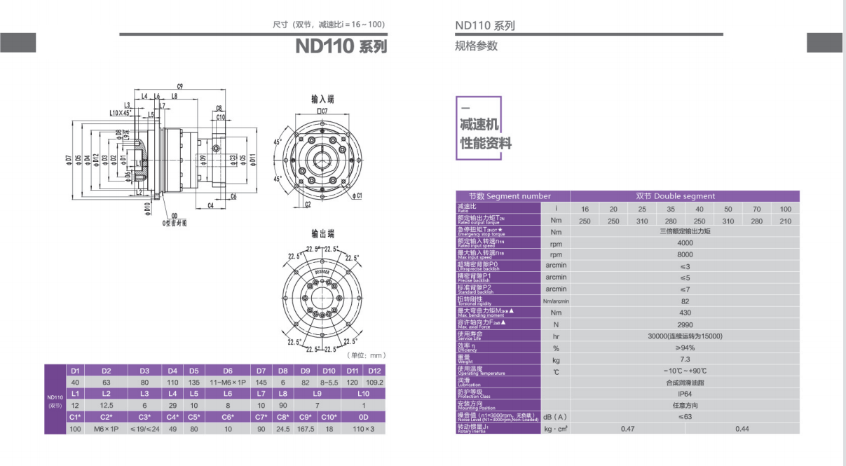 ND110系列超精密背隙行星減速機系列:ND110系列精密背隙行星減速器系列:ND110系列標準背隙行星減速機系列: