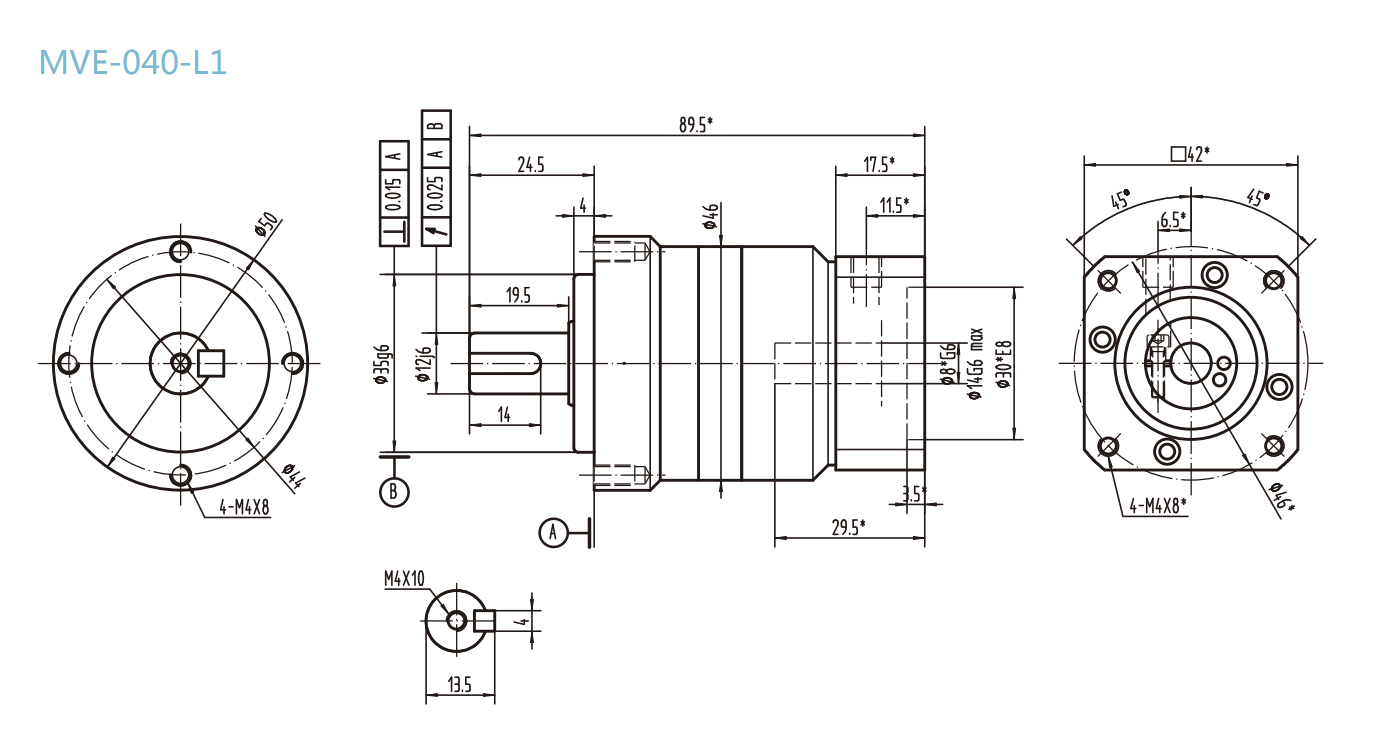 MVE-040-L1系列精密行星減速器型號(hào)尺寸與圖紙