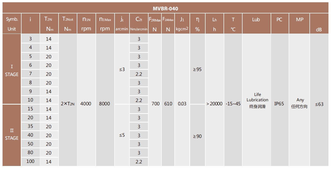 MVBR-040-L1系列超精密背隙行星減速機系列(P0): MVBR-040-L1系列精密背隙行星減速器系列(P1): MVBR-040-L1系列標(biāo)準(zhǔn)背隙行星減速機系列(P2):