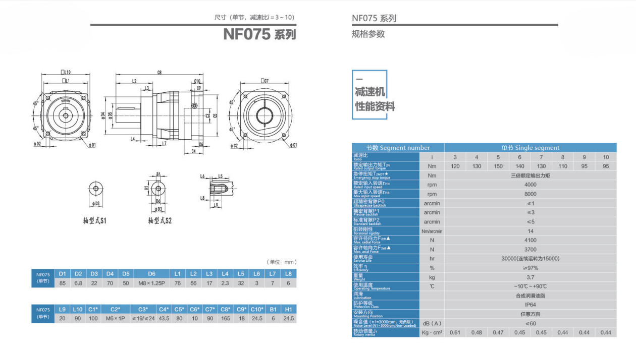 NF075系列超精密背隙行星減速機(jī)系列(P0): NF075系列精密背隙行星減速器系列(P1): NF075系列標(biāo)準(zhǔn)背隙行星減速機(jī)系列(P2):