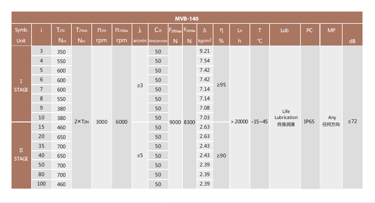 MVB-140-L2系列超精密背隙行星減速機(jī)系列(P0): MVB-140-L2系列精密背隙行星減速器系列(P1): MVB-140-L2系列標(biāo)準(zhǔn)背隙行星減速機(jī)系列(P2):