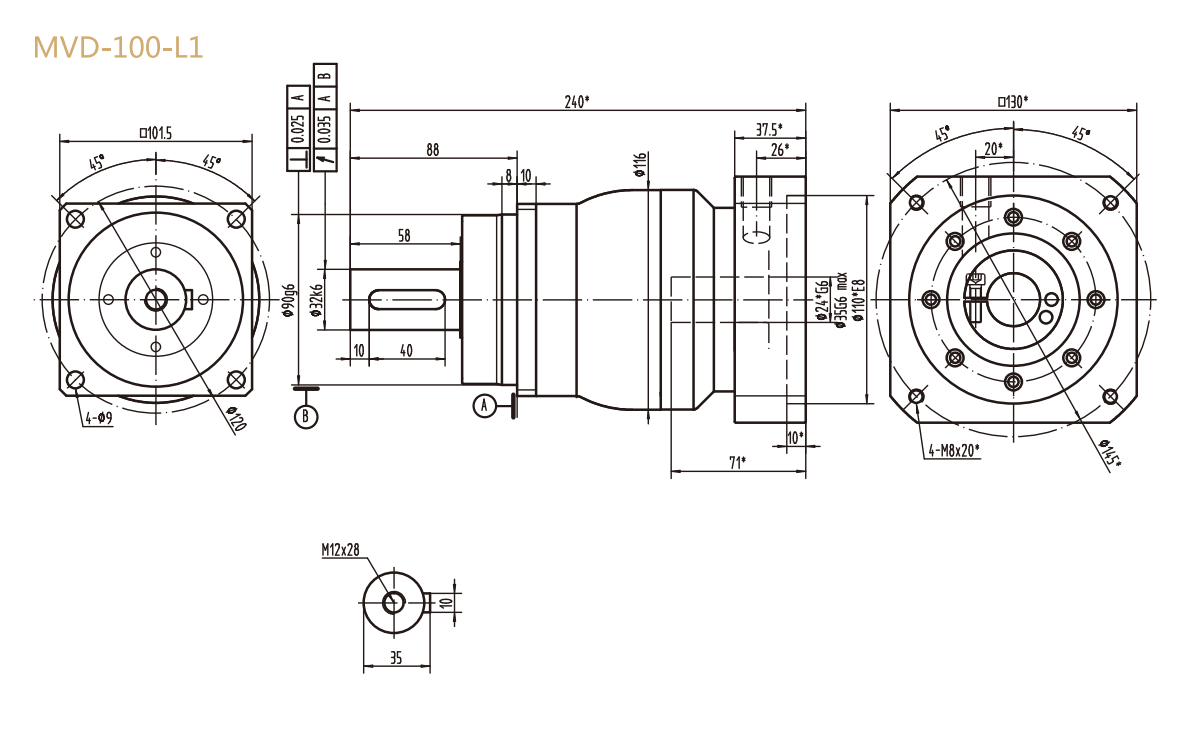 MVD-100-L1系列精密行星減速器型號(hào)尺寸與圖紙