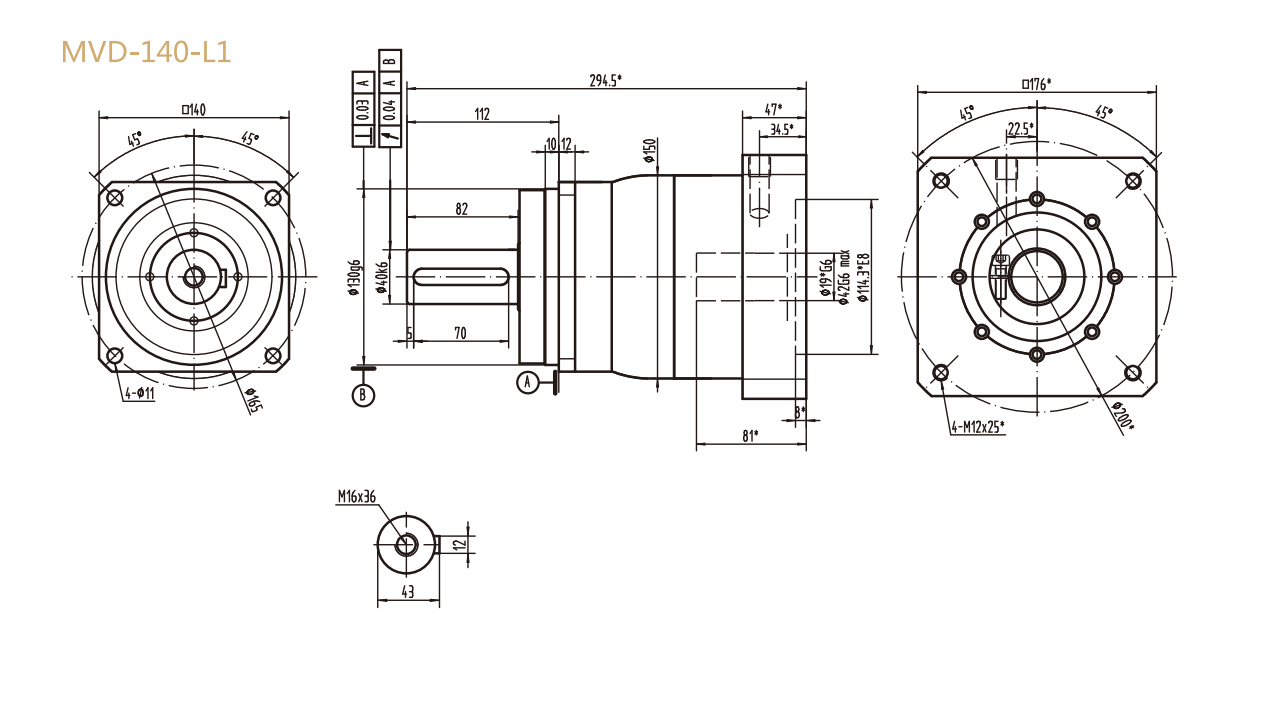 MVD-140-L1系列精密行星減速器型號尺寸與圖紙
