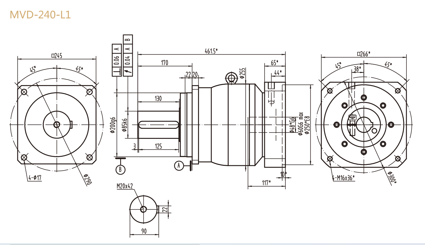 MVD-240-L1系列精密行星減速器型號(hào)尺寸與圖紙