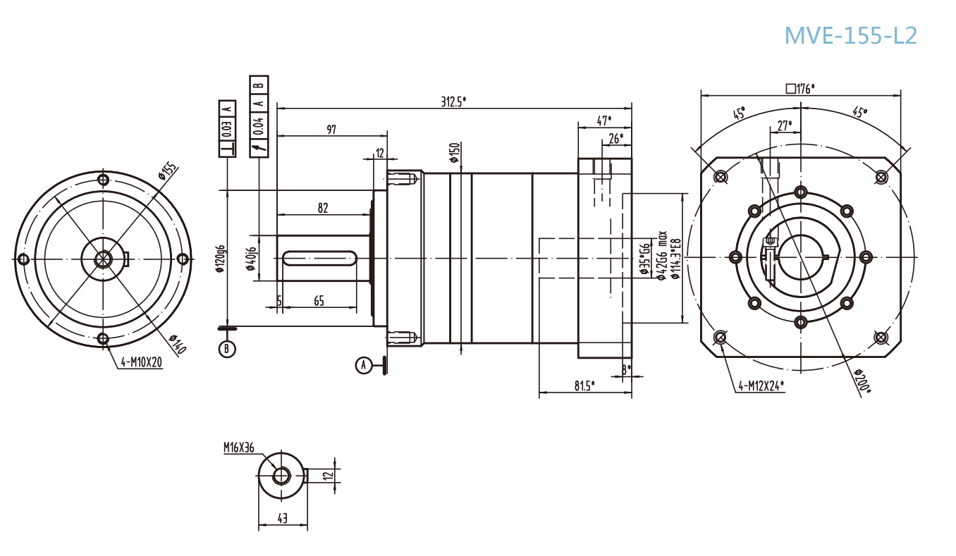 MVE-155-L2系列精密行星減速器型號(hào)尺寸與圖紙