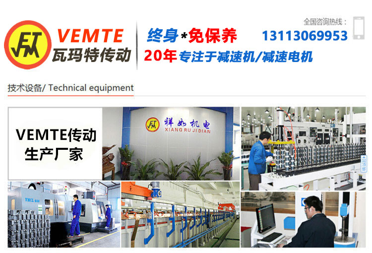 VEMTE(瓦瑪特)傳動 減速機/減速電機 生產廠家歸屬于廣東祥如機電設備有限公司,擁有自主品牌,兼?zhèn)涞聡姍C制造資深技術研發(fā)團隊,優(yōu)質金屬材料供應商,先進的技術設備和生產工廠。標準的生產工藝規(guī)范,嚴苛的質檢流程,以及完善的售后體系。自2006年開始已經服務了50000+客戶,深受客戶的好評與認可。VEMTE(瓦瑪特)品牌主要產品:減速機,減速電機,剎車電機及變頻器等系列產品,主要服務于機械制造,節(jié)能環(huán)保,新能源等多領域,產品廣泛應用于空氣壓縮機,陶瓷,紡織,造紙,制藥,機床,建材,礦山,風力發(fā)電,起重,船舶等行業(yè)。同時,廣東祥如機電設備有限公司致力打造節(jié)能環(huán)保的電機,減速電機及工控自動化系列產品。