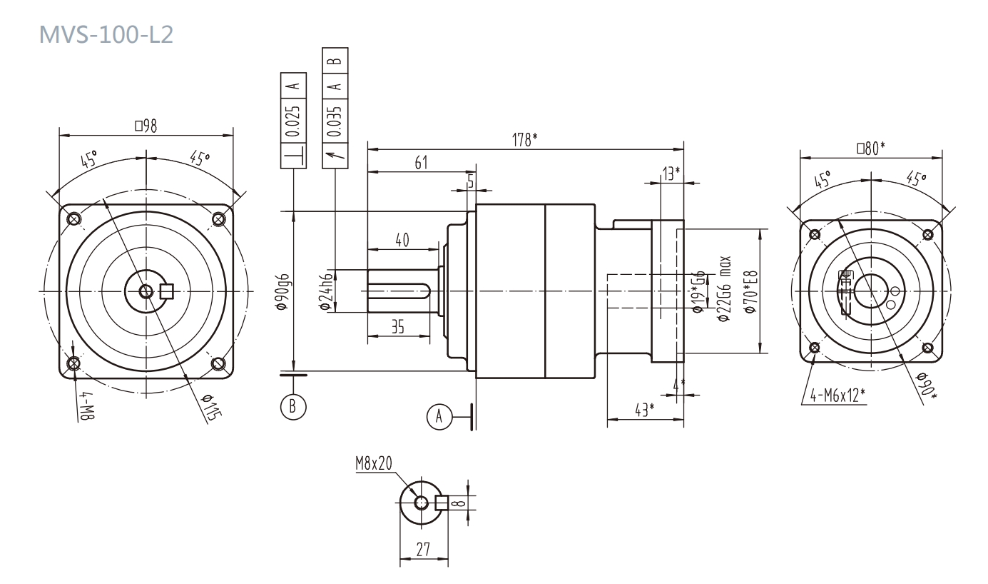 MVS-100-L2系列精密行星減速器型號尺寸與圖紙