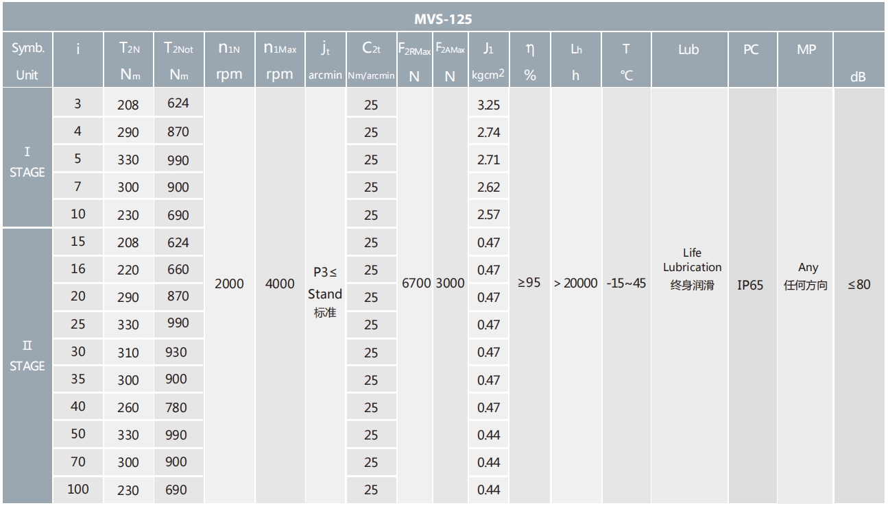 MVS-125-L1系列超精密背隙行星減速機(jī)系列(P0): MVS-125-L1系列精密背隙行星減速器系列(P1): MVS-125-L1系列標(biāo)準(zhǔn)背隙行星減速機(jī)系列(P2):
