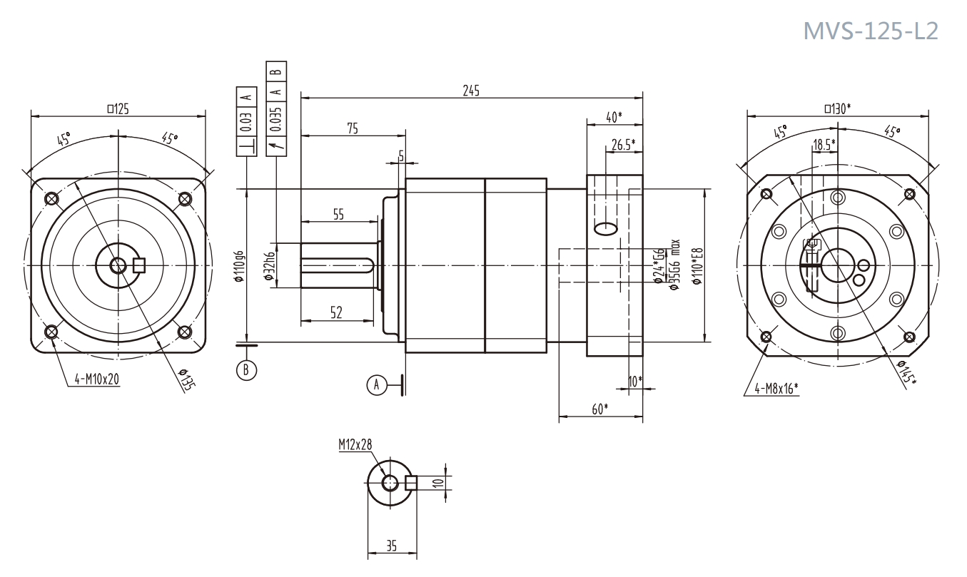 MVS-125-L2系列精密行星減速器型號(hào)尺寸與圖紙