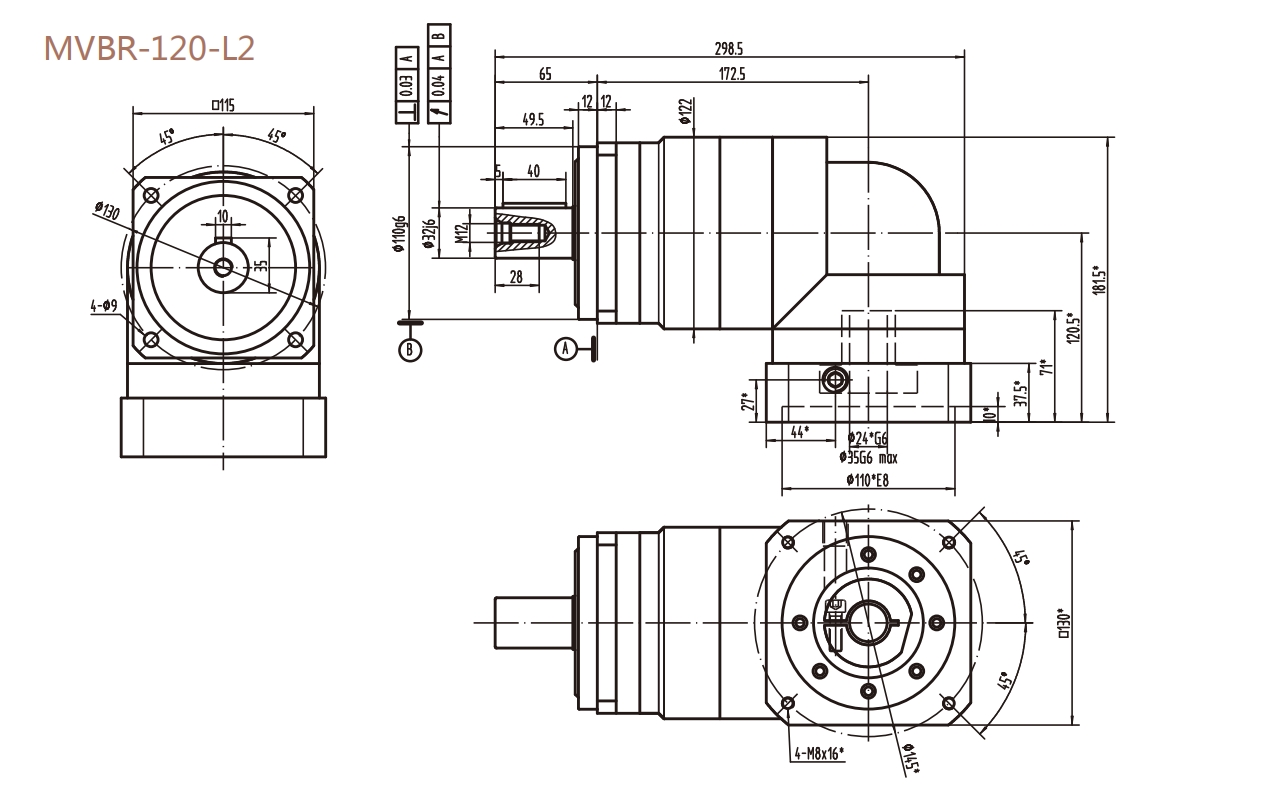 MVBR-120-L2系列精密行星減速器型號尺寸與圖紙