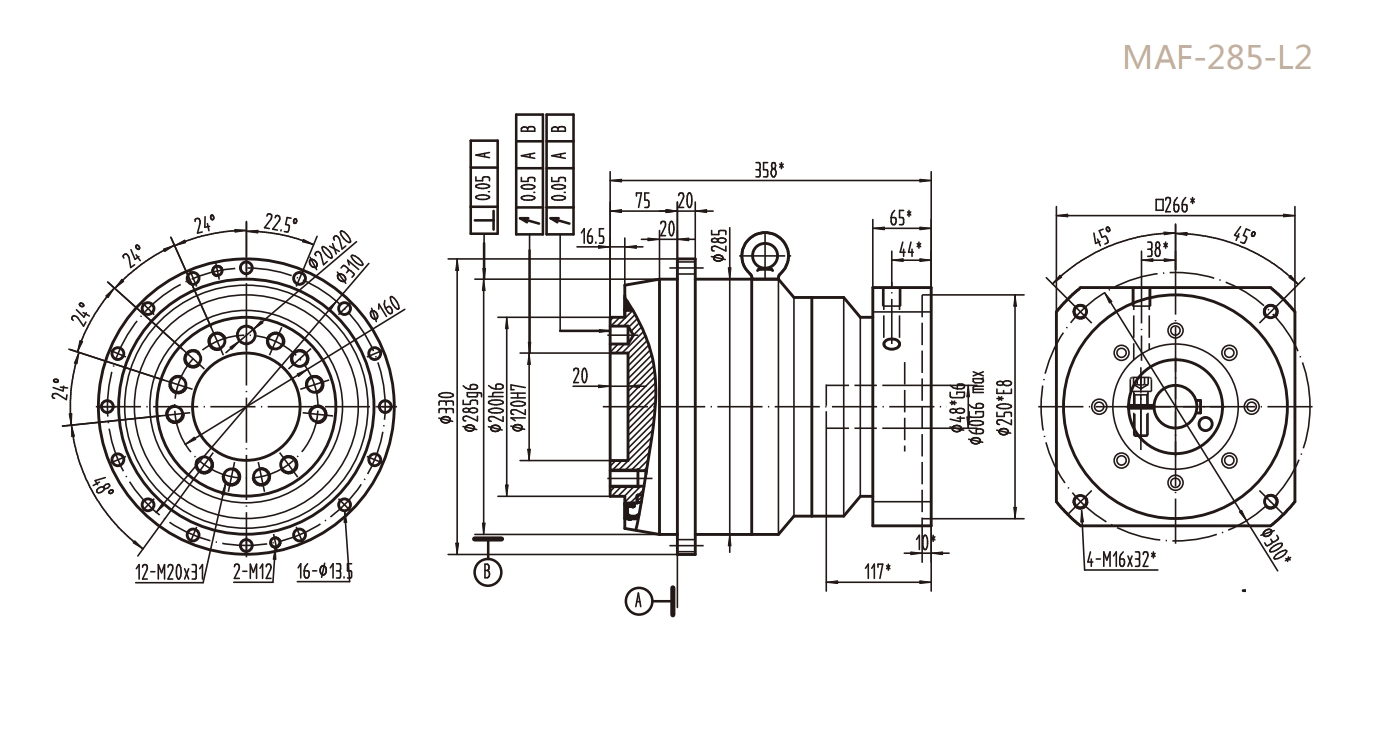 MAF-285-L2系列精密行星減速器型號(hào)尺寸與圖紙